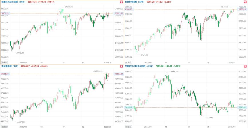 道指、标普500指数创收盘新高,英特尔涨超10%,中概指数跌1.3%
