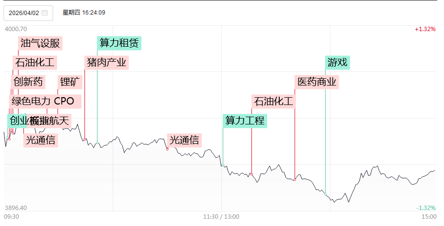 4月2日,市场全天震荡调整,创业板指、科创50指数均跌超2%,深成指跌超1%。截至收盘,沪指跌0.74%,深成指跌1.6%,创业板指跌2.31%。沪深两市成交额1.84万亿,较上一个交易日缩量169