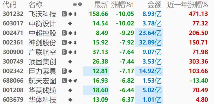 商业航天板块午后下挫,中衡设计跌停