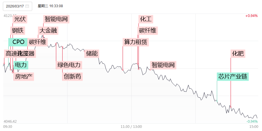 3月17日,市场全天震荡调整,深成指跌超1%,创业板指跌超2%。截至收盘,沪指跌0.85%,深成指跌1.87%,创业板指跌2.29%。量能出现萎缩,沪深两市成交额仅2.21万亿,较上一个交易日缩量1