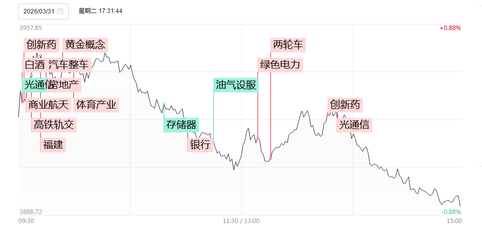 3月20日,市场全天冲高回落,沪指震荡调整失守半年线,跌破4000点整数关口,创业板指盘中刷新年内新高后快速回落。截至收盘,沪指跌1.24%,深成指跌0.25%,创业板指涨1.3%。黄白二线分化明显