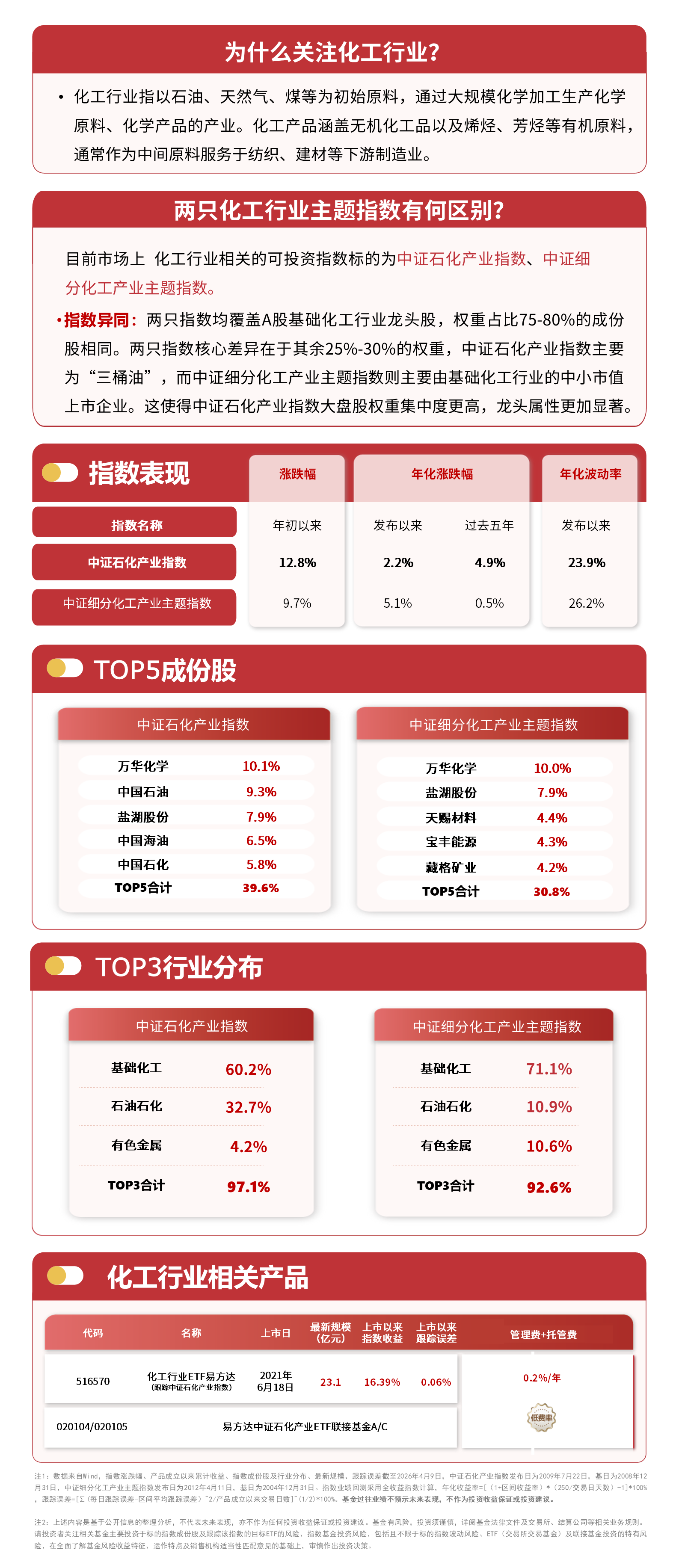 化工品涨价潮扩散,低费率的化工行业ETF易方达(516570)紧密跟踪中证石化产业指数