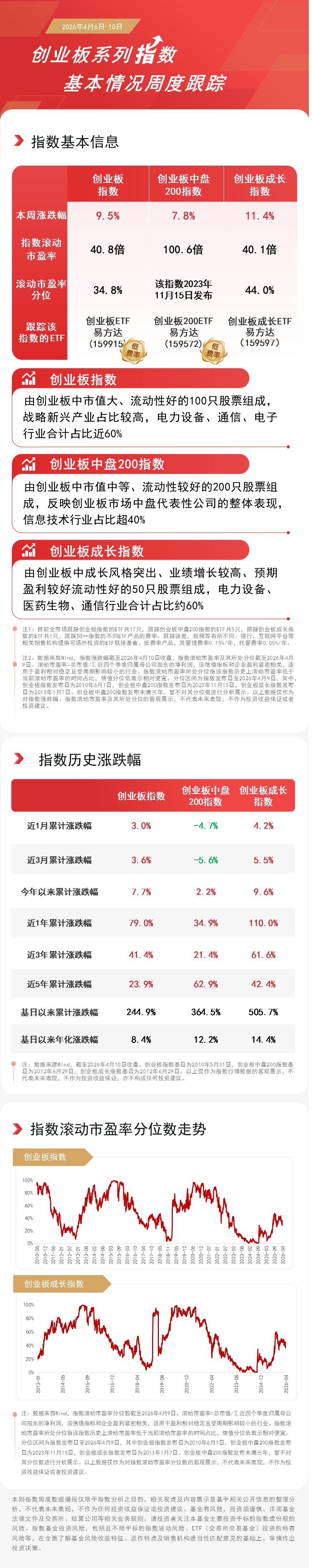 4月10日,创业板指跳空高开,收涨3.8%,盘中一度创下近4年新高,创业板ETF易方达(159915,联接基金A/C/Y:110026/004744/022907)全天成交额近50亿元。从本周维度来
