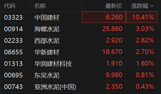 建材水泥股拉升,中国建材大涨超10%领衔,刷新阶段新高