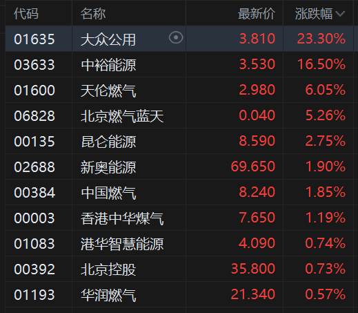 燃气股大涨 大众公用涨超23%领衔 中东乱局致卡塔尔停产引爆天然气市场