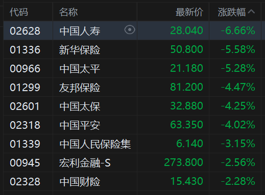 内险股继续调整 中国人寿跌近7% 近期自高点回撤超20%