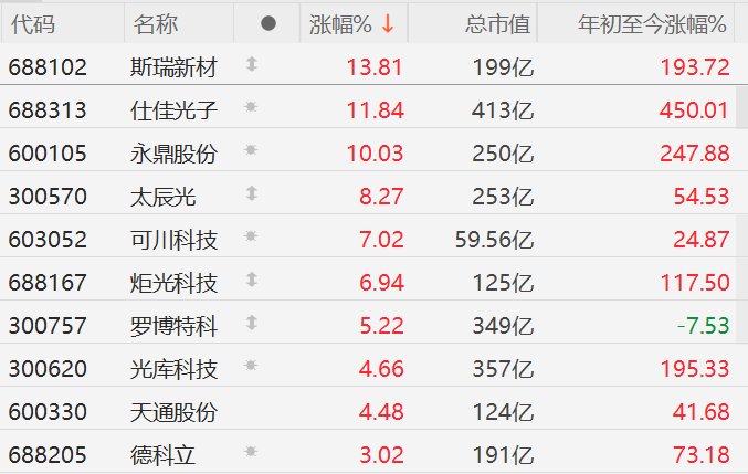 CPO概念股集体上涨,仕佳光子涨超11%