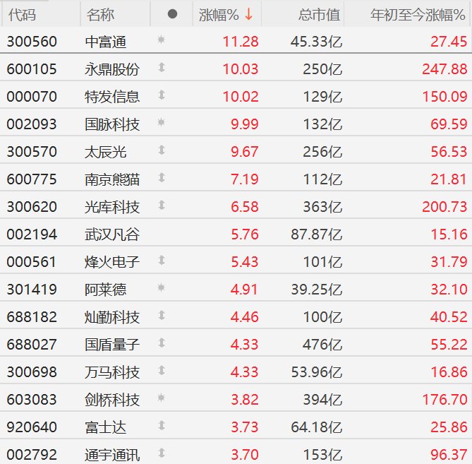 通信设备股走强,特发信息、国脉科技涨停