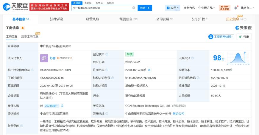 中广核南方科技公司增资至22亿 增幅约47%