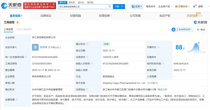 圣兆药物、海正药业成立凌愈制药公司 注册资本1亿
