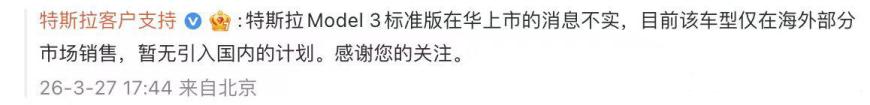 官方辟谣!特斯拉:Model 3标准版暂无引入国内的计划