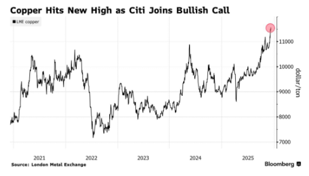 涨势如虹!铜价延续破纪录涨势,花旗加入看涨阵营