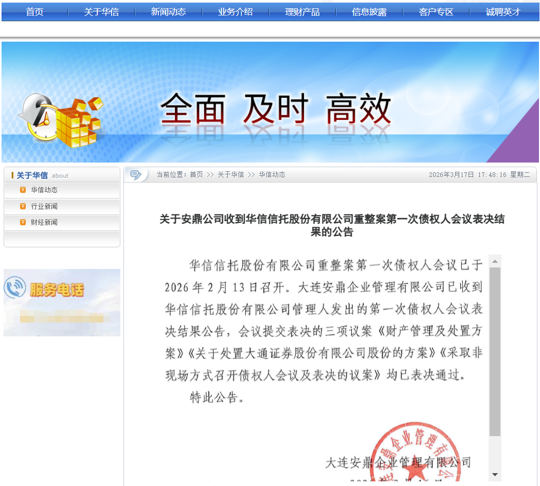 华信信托重整取得关键进展 债权人会议核心议案获通过