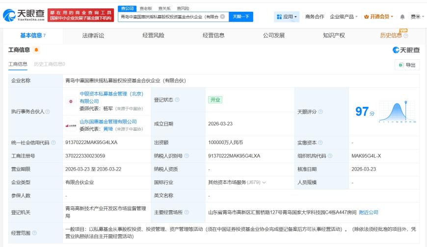 中银资产等在青岛成立私募股权投资基金 出资额10亿