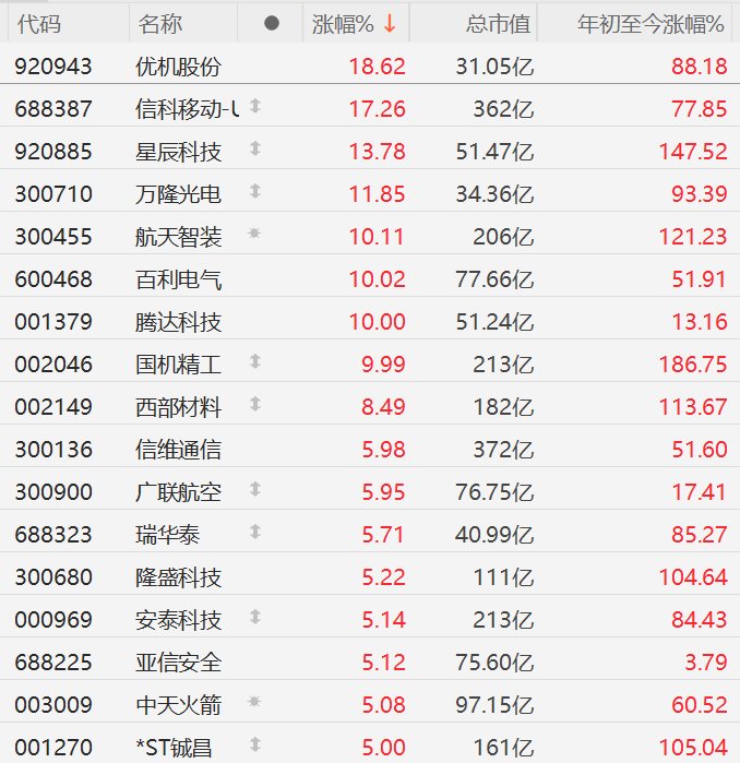 A股商业航天板块继续走强,腾达科技、国机精工等涨停