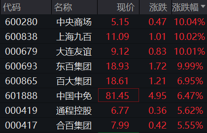 政策加码扩内需首位任务!A股零售股集体拉升,中央商场、东百集团等多股涨停