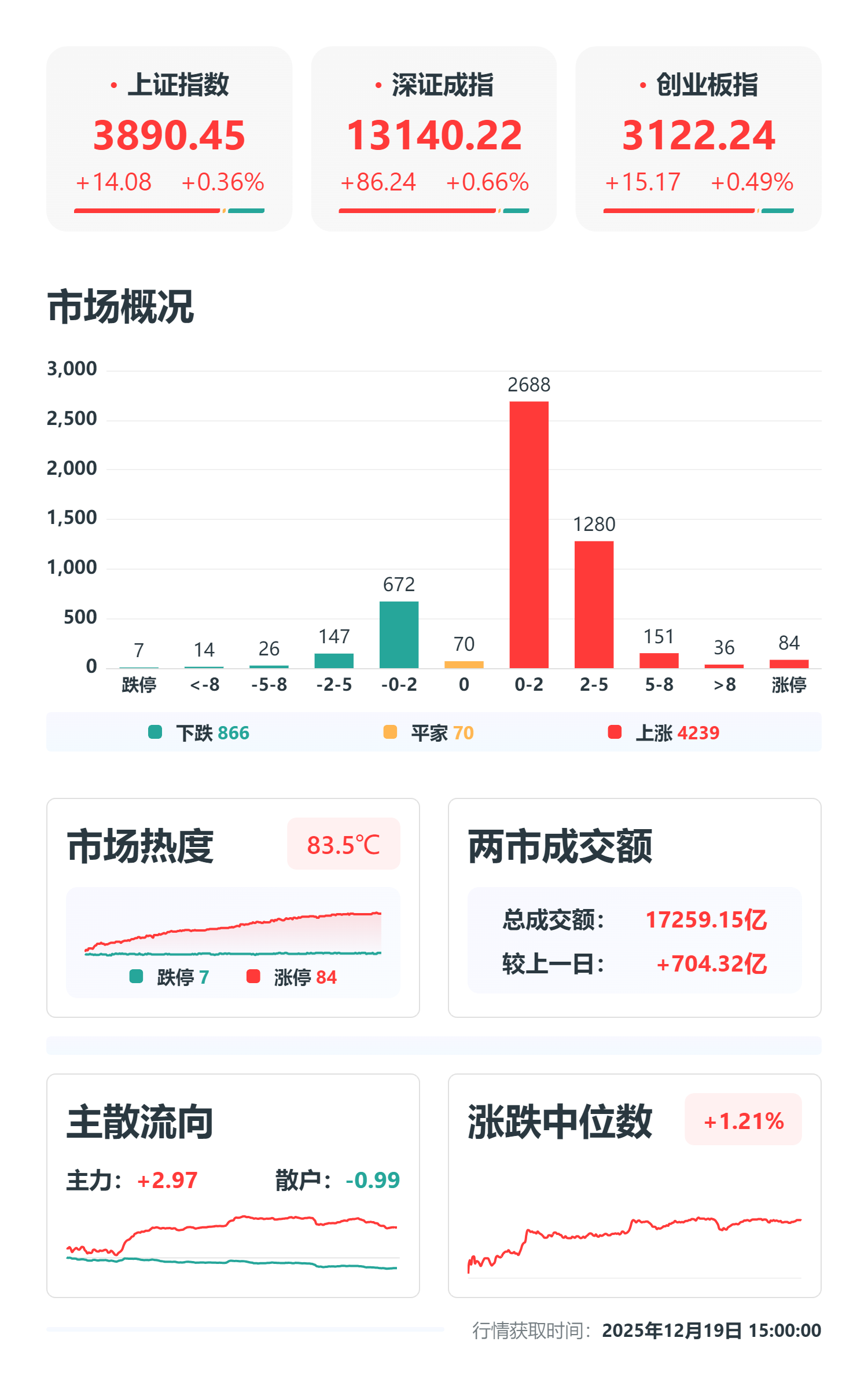 A股收评:沪指涨0.36%录得3连阳,创业板指冲高回落,全市场上涨个股超4500只