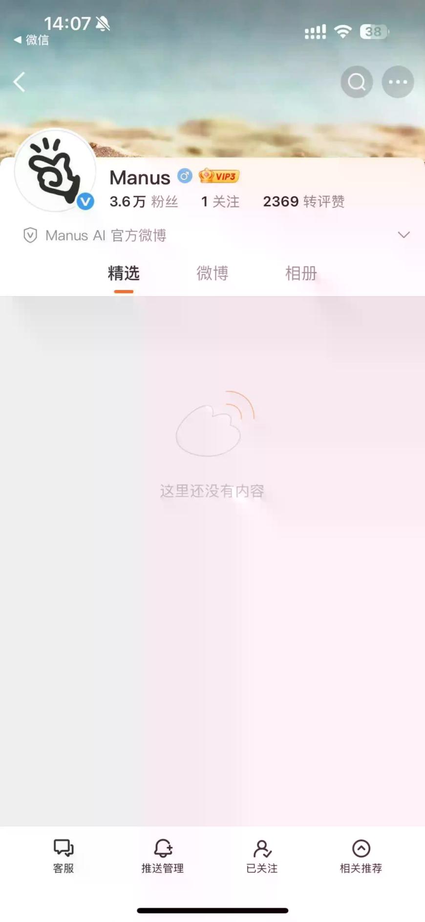 凤凰网科技讯 7月11日,Manus官方微博和小红书账号的内容已清空。通过国内浏览器进入Manus官网,显示的不再是“Manus中文版本正在开发中”,而是“Manus在你所在的地区不可用”。
