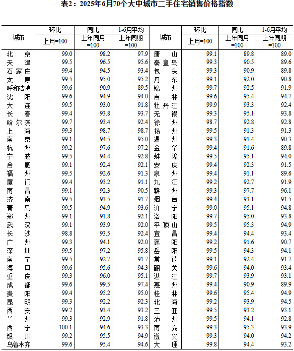 据国家统计局,2025年6月份,70个大中城市中,各线城市商品住宅销售价格环比下降,同比降幅整体继续收窄。