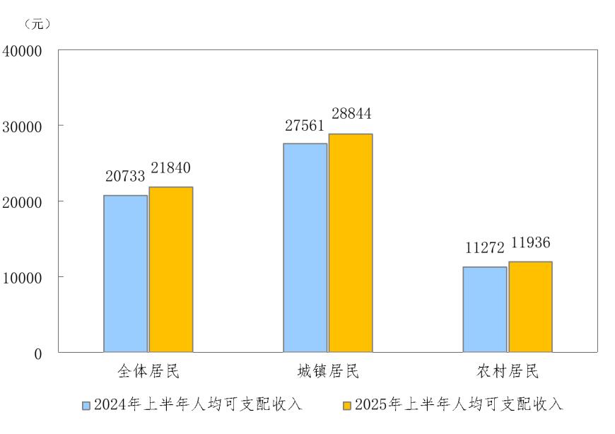 国家统计局:上半年全国居民人均可支配收入21840元,比上年同期名义增长5.3%,扣除价格因素实际增长5.4%