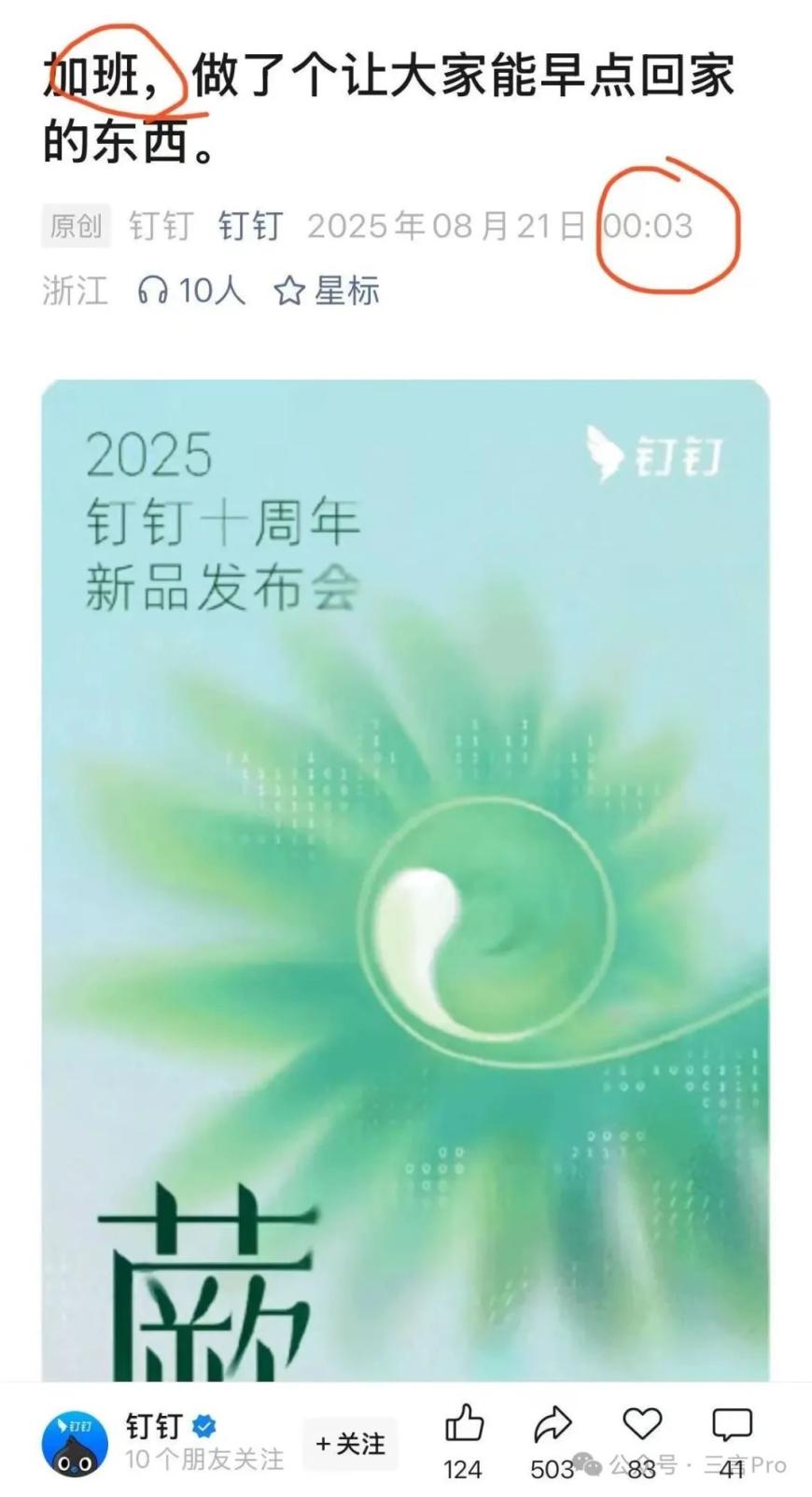 狂秀加班!钉钉凌晨12点发文硬蹭自家热点