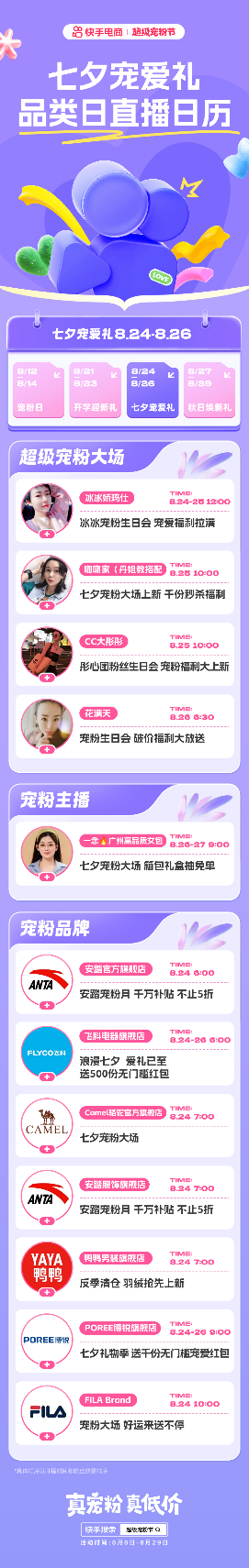 心动好礼畅购,七夕福利满满。在七夕情人节临近之际,快手电商“超级宠粉节”重磅上线七夕宠爱礼主题品类日活动。8月24日-26日,美妆、珠宝等大牌爆款好物限时宠粉价惊喜开售,达人、品牌七夕超级宠粉大场集中开播,超多宠粉福利送不停,为这个七夕增添更多浪漫与爱意。