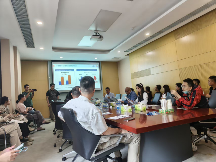 万泰生物高管与媒体调研团座谈交流。新京报贝壳财经记者 阎侠 摄