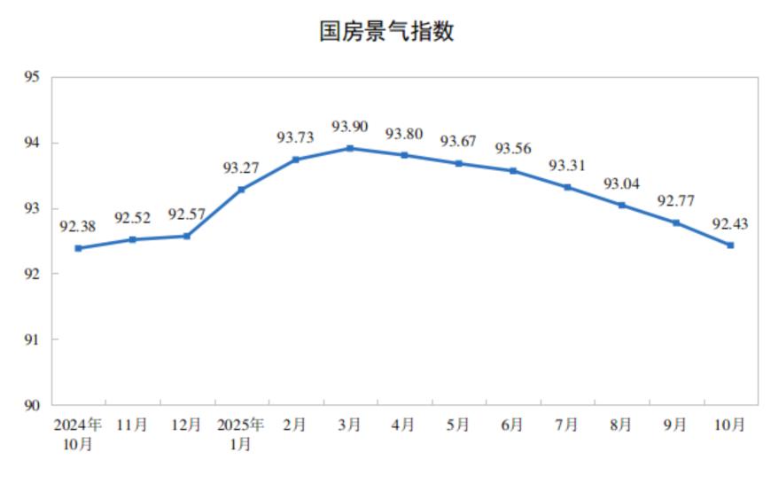 10月份,房地产开发景气指数(简称“国房景气指数”)为92.43。
