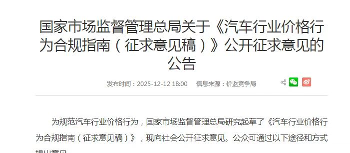 近日,市场监管总局研究起草的《汽车行业价格行为合规指南(征求意见稿)》开始征求意见,获得了多家车企响应。指南中条例众多,明确了从整车到零配件生产、从定价策略到销售行为等各环节的价格合规要求。但其中最引人关注的,还是“明确禁止车企以低于成本的价格销售汽车”,同时强制要求明码标价、合同明确交付日期等。