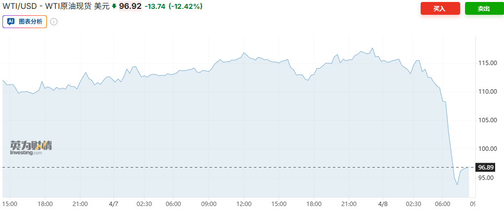美伊同意停火两周,黄金涨超3%、原油狂泻19%跌破百元关口