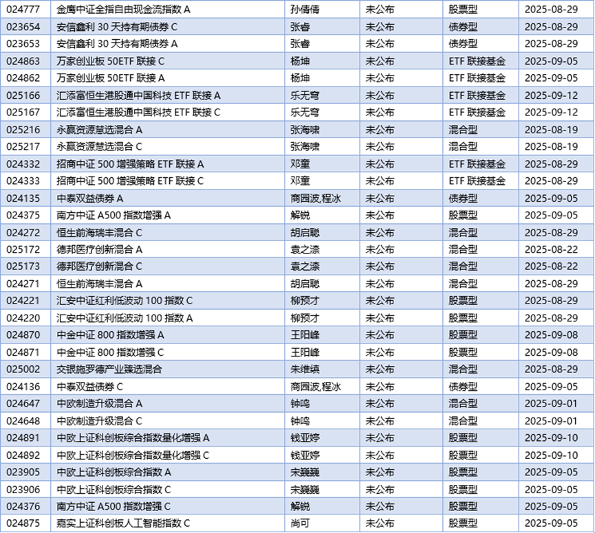 四、08月18日新发基金一览(不包含传统封闭式基金)