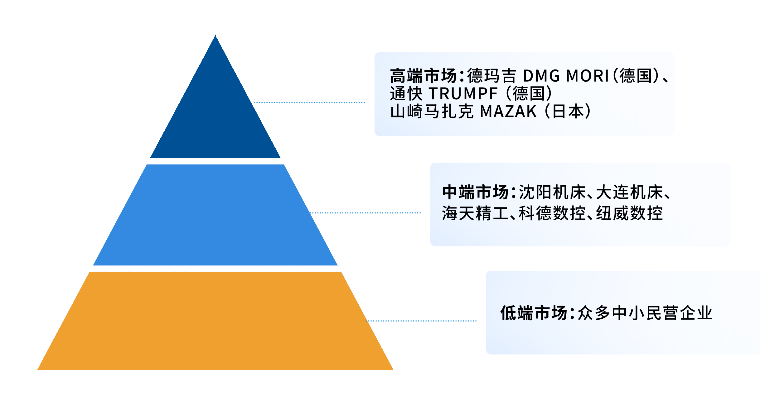 低端市场则由众多规模较小、技术含量较低、主营低端机床的中小民营企业构成,同质化竞争激烈。