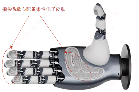 模仿人类皮肤感知机制、感知温度、湿度、接触力等信息的电子皮肤。