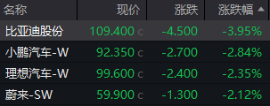 新能源汽车股跌幅居前,比亚迪股份跌近4%,“蔚小理”跌超2%。乘联分会秘书长崔东树发文称,2025年8月中国自主车企在海外部分能持续统计的地区的当地销量初步统计达到28.6万台,同比增长16%,环比降3%;2025年1-8月的中国海外市场自主品牌销量210万台,同比增长11%,中国自主的海外部分可统计市场的零售表现很好。