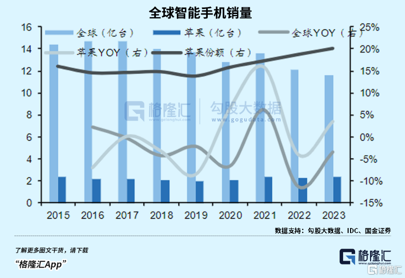 2023年全球智能手机出货量同比下降3.2%,降至11.7亿部,是十年来最低的全年出货量。与其他手机厂商相比,iPhone的销量份额虽然得到提升,但在竞争逐渐激烈的高端手机市场,iPhone去年在中国市场出现了罕见的发售即降价的现象。