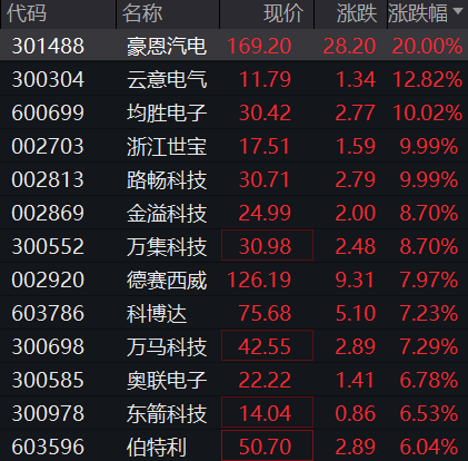 L3智能驾驶准入破冰!豪恩汽电20CM涨停,云意电气涨超12%,均胜电子、浙江世宝、路畅科技涨停