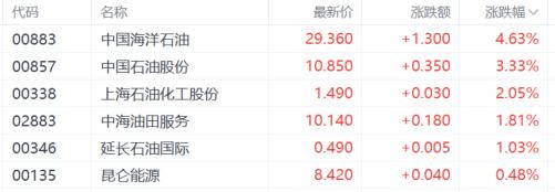 今日,港股油气设备、石油股集体大涨,山东墨龙涨超14%,百勤油服(核心股)涨超8%,华油能源涨超7%,中国海洋石油涨超4%,中国石油股份、中石化油服、中海油田服务跟涨。