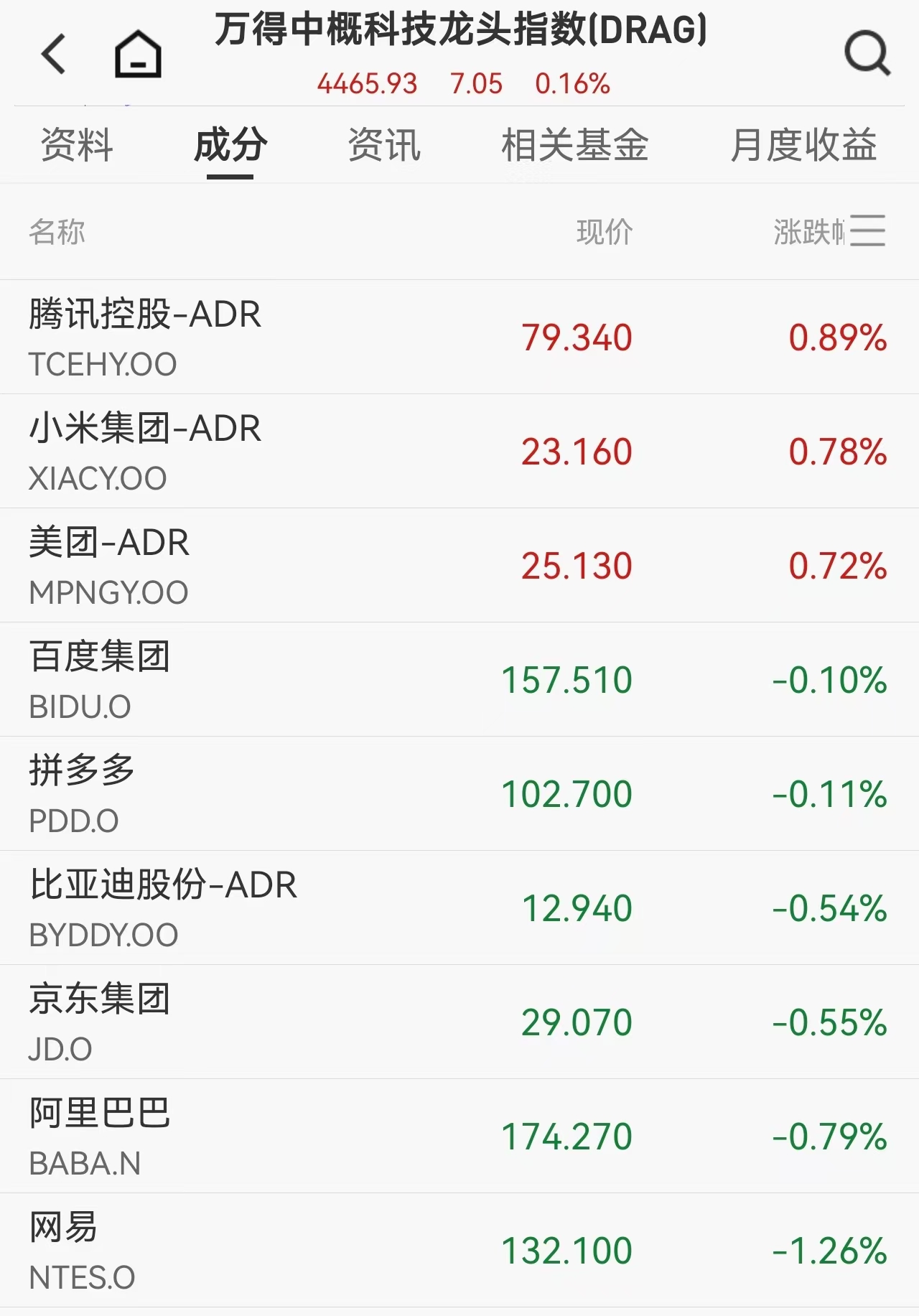 中概股方面,纳斯达克中国金龙指数小幅收涨0.35%,万得中概科技龙头指数涨0.16%。在线教育股表现亮眼,好未来涨超18%,其2026财年第三季度业绩超预期;蔚来、贝壳、亚朵涨超3%,腾讯控股、小米集团、美团集体小幅上涨。下跌方面,小马智行跌超8%,阿特斯太阳能、小赢科技跌超9%。