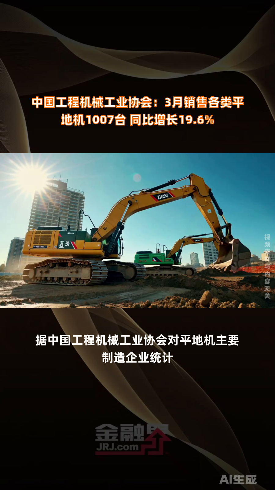 中国工程机械工业协会:3月销售各类平地机1007台 同比增长19.6%